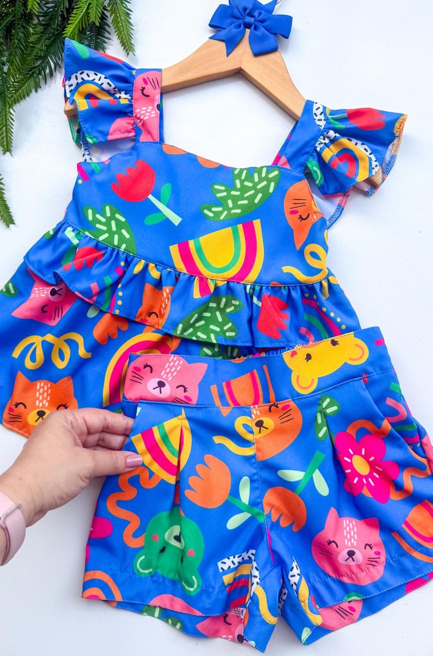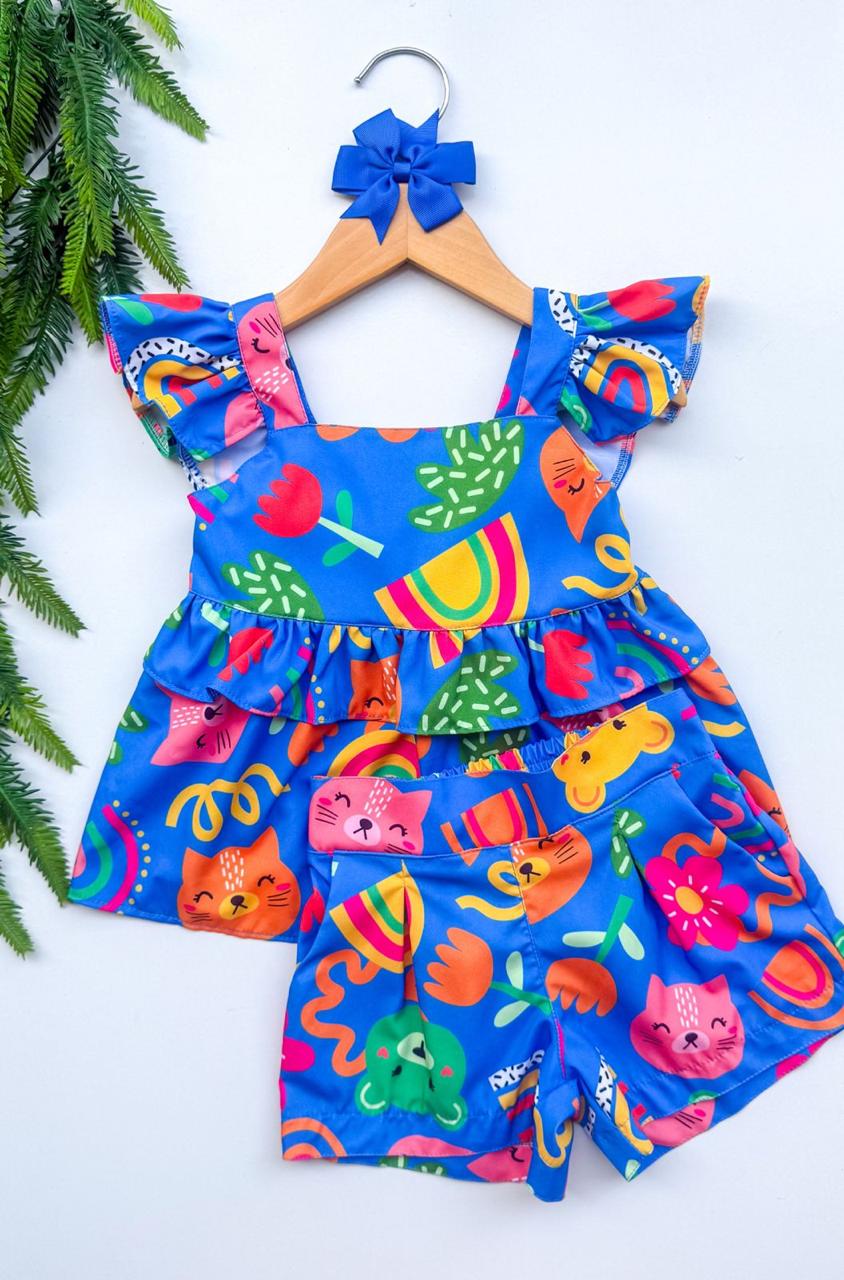 – 8 anos – Blusa (44cm altura x 32cm busto) Short (27cm altura x 38cm quadril frente)