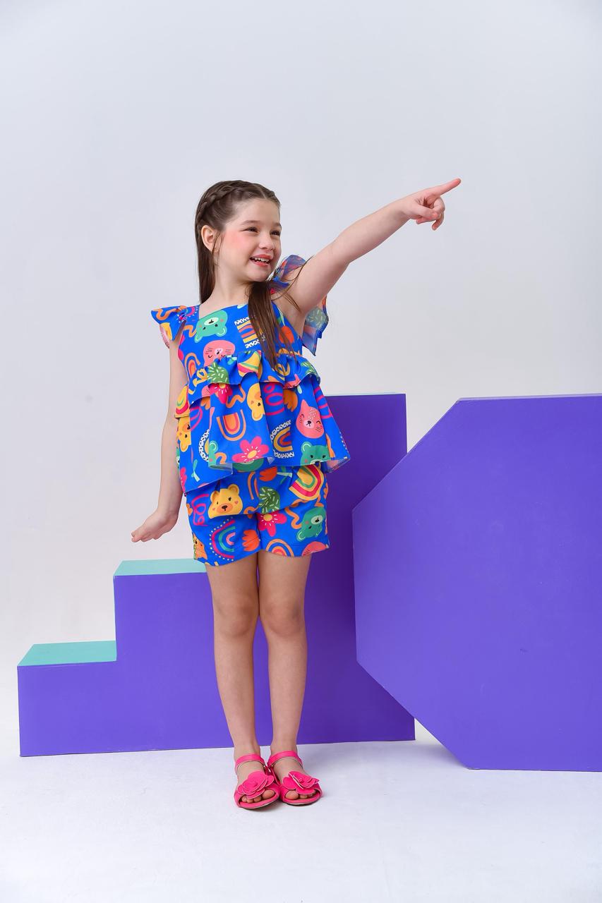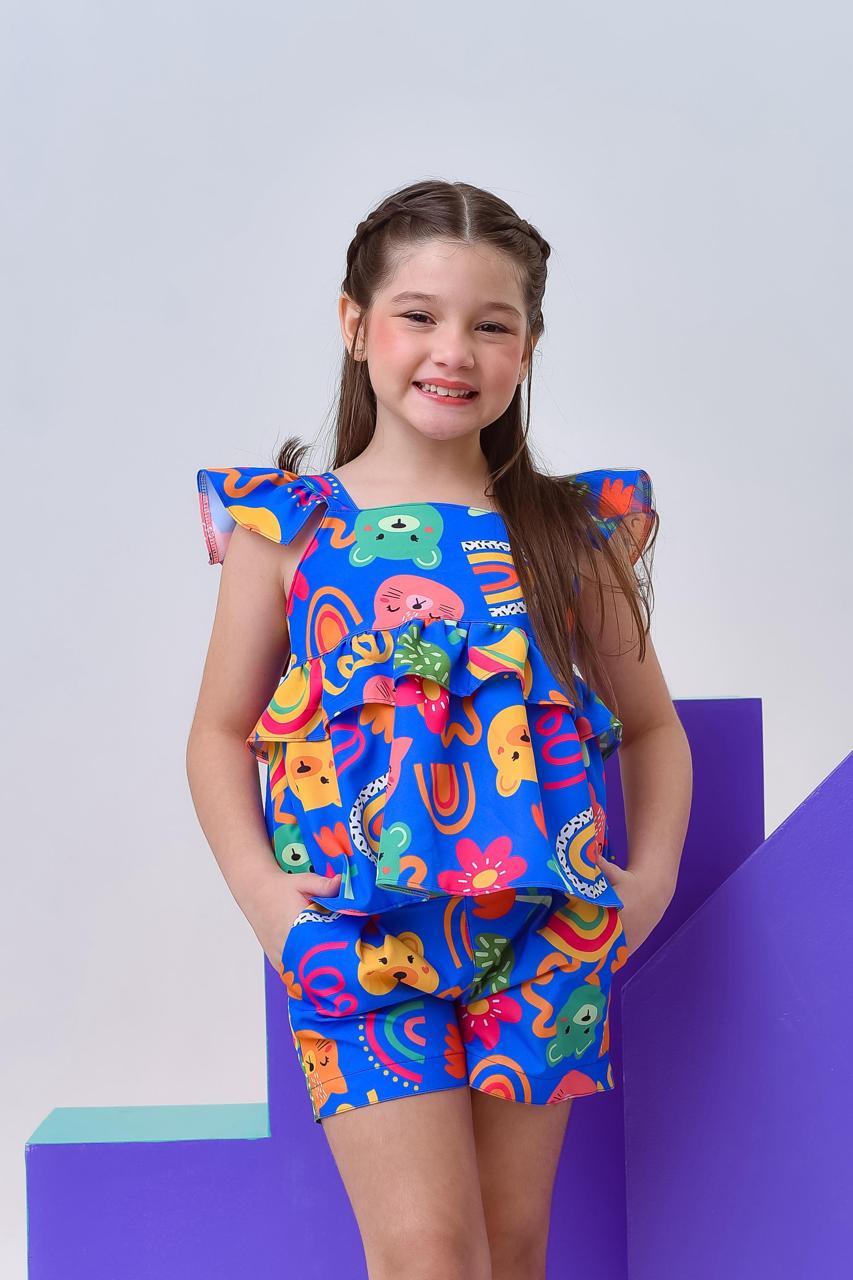 É feito em crepe microfibra, um tecido macio, com excelente caimento e super confortável para as pequenas aproveitarem cada momento com liberdade.