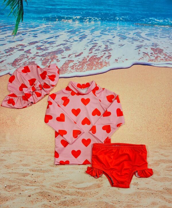 Conjunto completo de moda com estampa de coração para meninas com fator de proteção solar UV50