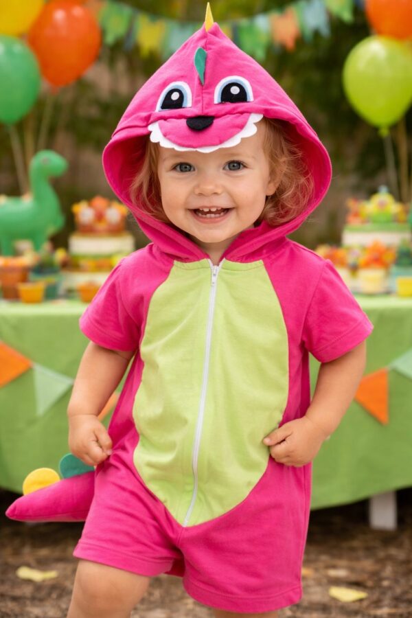 Fantasia Dinossauro Rosa – Macacão Curto Infantil