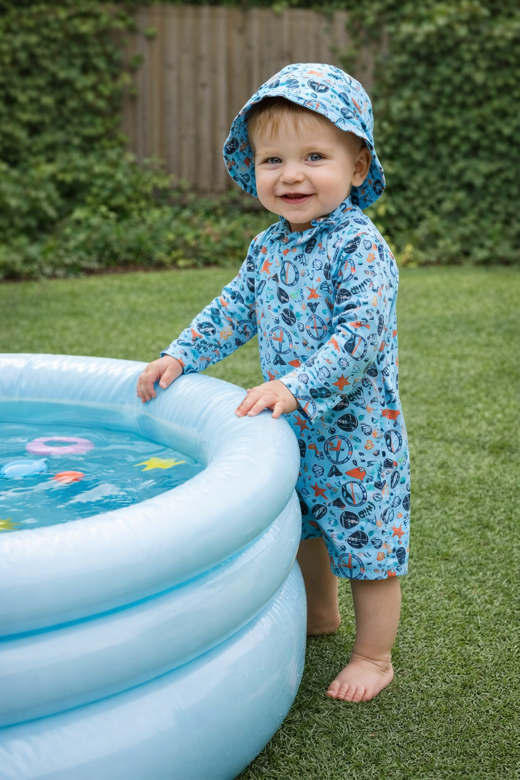 macacão de praia com proteção solar para bebe menino