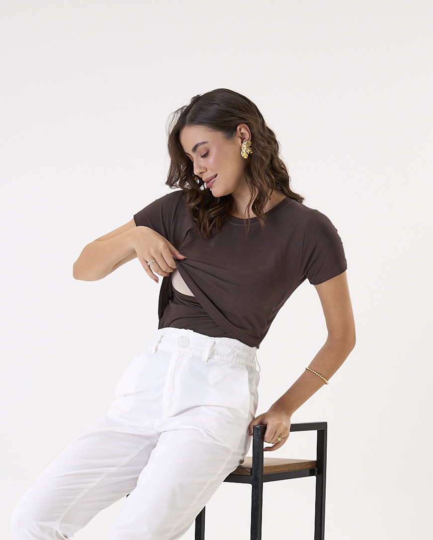 T-SHIRT DE AMAMENTAÇÃO MARROM CAFE